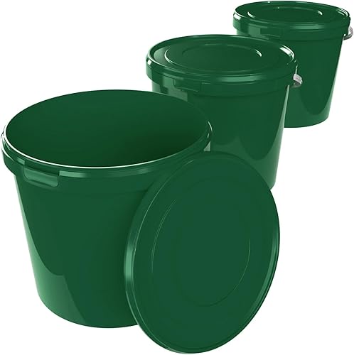 Seau rond en plastique avec couvercle - 10 l - Vert - Convient à un usage alimentaire, hermétique et stable - Seau vide avec poignée et couvercle - Convient pour les denrées alimentaires, la chimie,