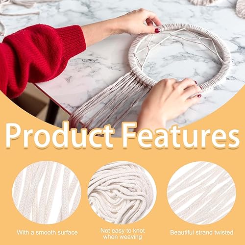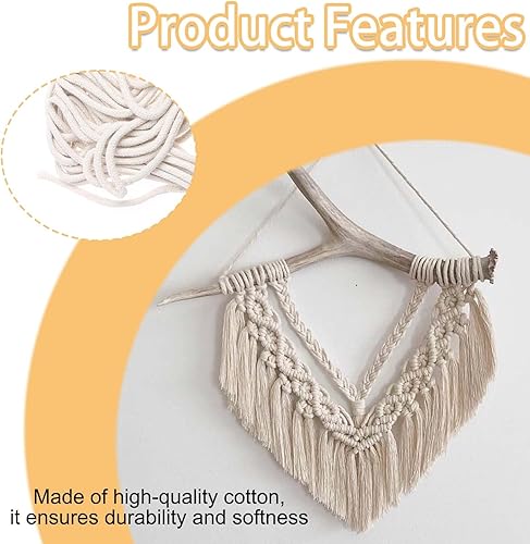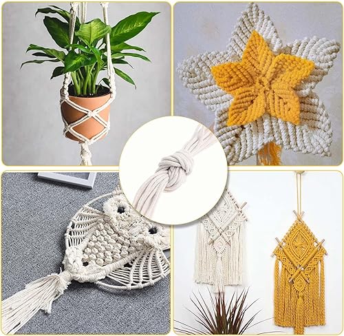 Cordon en coton pour macramé - 10 m x 4 mm - Blanc - Pour suspendre des photos, ornements, projets d'artisanat, décorations d'intérieur, loisirs créatifs