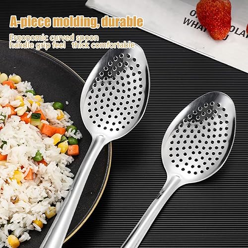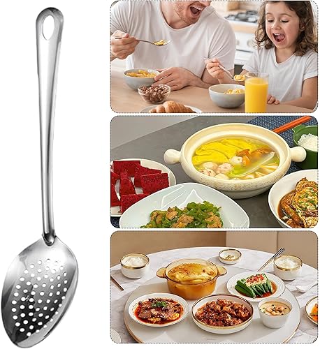 Cuillère Perforée en Acier Inoxydable,38CM Cuillère de Drainage - Ustensile de Cuisine Antiadhésif pour Pâtisserie Cuisson Extérieur et Mélanges Domestiques