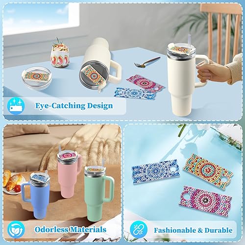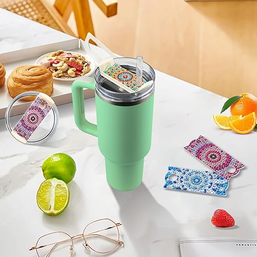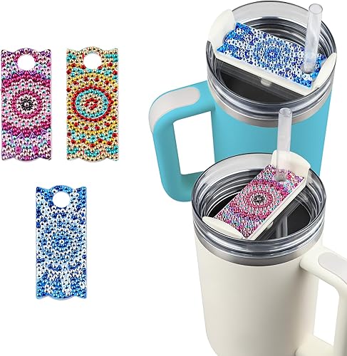 QENSPE 3pcs DIY Gobelet Décor du Couvercle pour Stanley Quencher H2.0 Tumbler 1200ML, Peinture Diamant Mug Tasse Paille Couvercle Etiquette Décor Gobelet Tasse Accessoires
