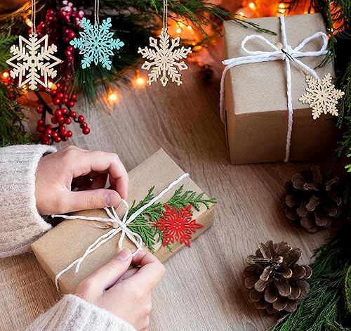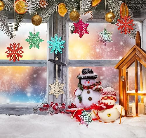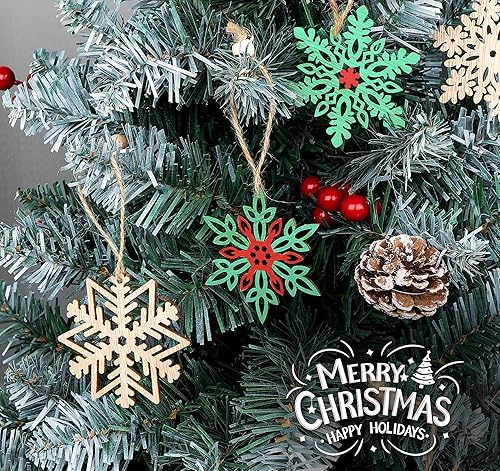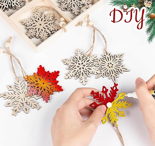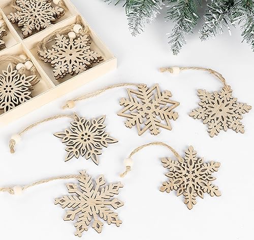 estcoo Lot de 20 Flocon de Neige, 5 Styles Decoration Noel en Bois pour Sapin Rustique, Arbre de Noël Ornements à Suspendre pour l'Artisanat Bricolage Mariage-7,5 cm