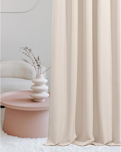 ROOM207 Room99 Rideau avec Passe Tringle Laurel 140 x 260 cm Largeur x Hauteur, Décoration de Fenêtre, Rideau occultant Thermique Isolant Anti Froid et Chaleur pour Salon Crème