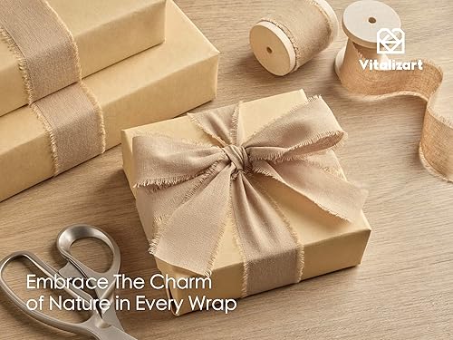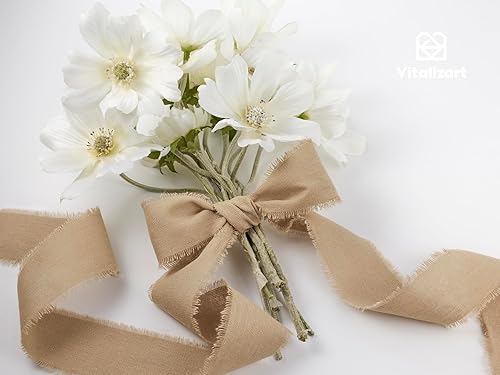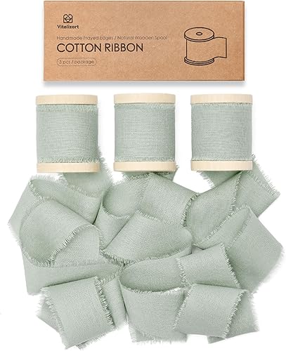 Vitalizart Ruban de Coton 3,8 cm x 13,7 m Kaki, Rubans à Franges Faits à la Main pour l'Emballage de Cadeaux, les Invitations de Mariage, les Bouquets, les Décorations de Noël