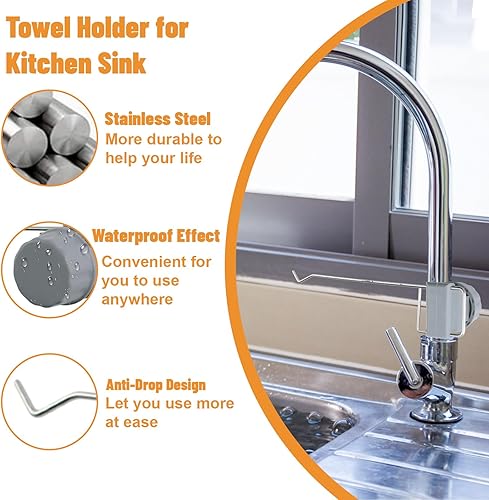 MOROBOR Lot de 2 porte-serviettes de cuisine pour robinet d'évier, réglable en acier inoxydable pratique, support pour torchons à vaisselle, porte-serviettes pour plusieurs types de robinets d'évier