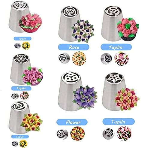 Lot de 11 douilles en acier inoxydable professionnel,Embouts : 7 grandes douilles à fleurs, 2 feuilles, 1 adaptateur, 1 sac à douille en silicone, accessoires de pâtisserie, décoration de gâteau