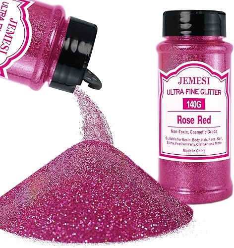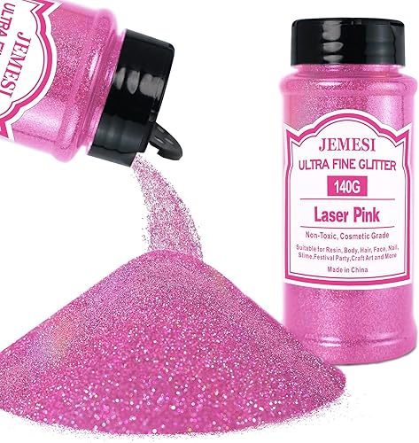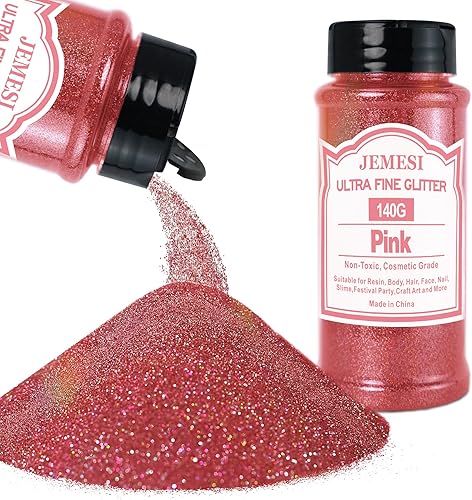 JEMESI Poudre à paillettes rose - 140 g - 0,2 mm - Poudre pailletée ultra fine pour résine époxy, bricolage, peinture tumbler - Fabrication de bougies - Paillettes cosmétiques, poudre à ongles