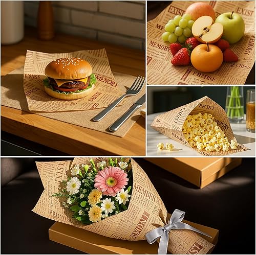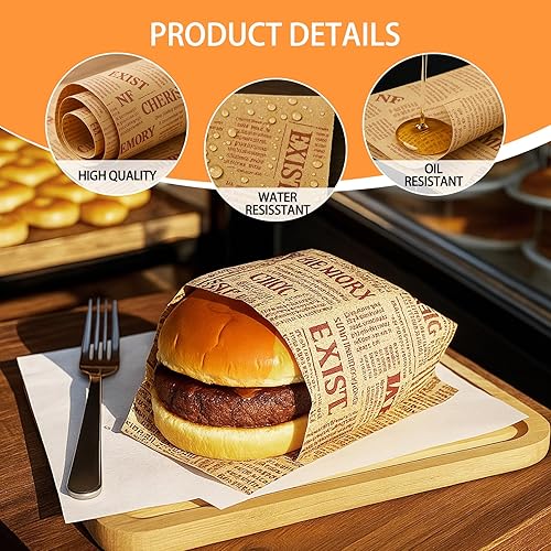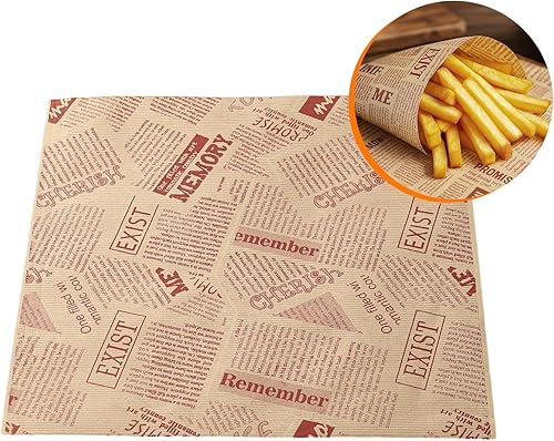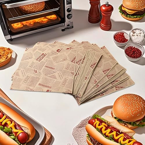 50 PCS Papier Emballage Alimentaire, 18 x 18 cm, Papier Journal Alimentaire, Emballage Sandwich, Papier Burger, Papier Frite, Sulfurisé Résistant à la Graisse pour Hamburger et Frites
