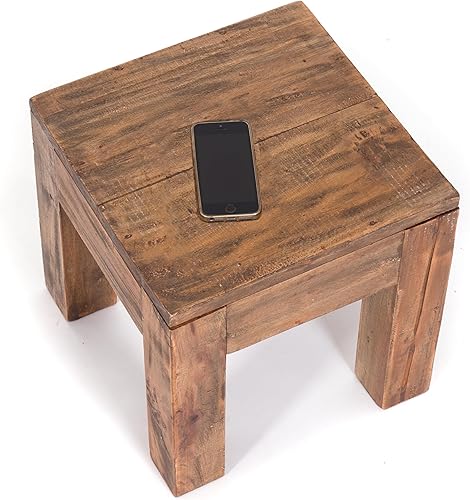 DESIGN DELIGHTS Table basse rustique Square 40 - En acajou massif - 40 x 40 x 40 cm (H x l x P) - Table d'appoint