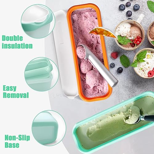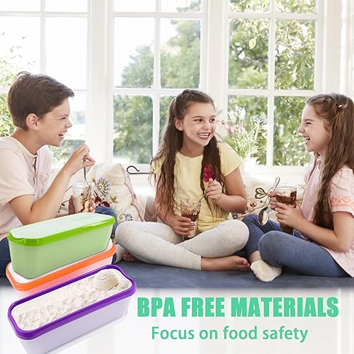 Lot de 3 bacs à glace pour crème glacée, 1,5 l, réutilisables, avec couvercle, pour crème glacée maison, sorbet, yaourt, boîtes de congélation, sans BPA
