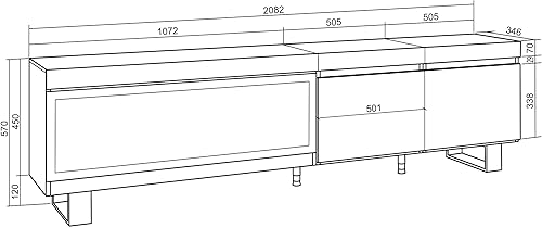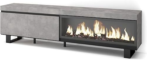 Skraut Home | Meuble TV | Banc Télé | Grand Espace de Rangement | 210 | pour Les TV jusqu'à 80' | Cheminée électrique XXL | Design Industriel | Style Moderne | Ciment