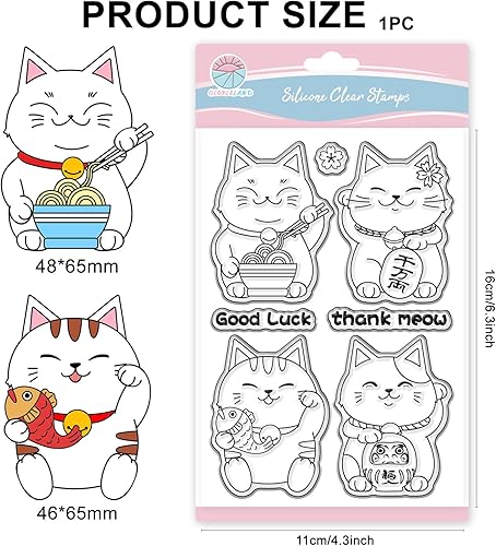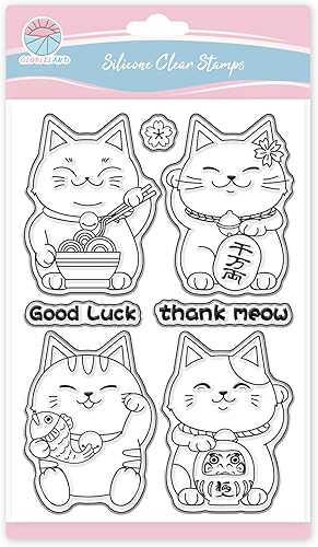 GLOBLELAND Tampons Transparents Lucky Cat pour Scrapbooking Tampons en Silicone Orientaux Japonais Tampons Transparents en Fleurs de Cerisier pour la Création de Cartes le Gaufrage le Journaling