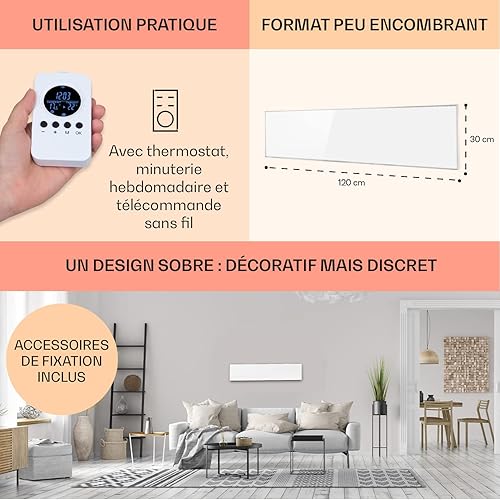 Klarstein Chauffage Infrarouge, 360W Radiateur Electrique Mural pour la Maison, Salle de bain, Télécommande, Thermostat, Détection de Fenêtre Ouverte, Chauffage Mural, Faible Encombrement et Econome