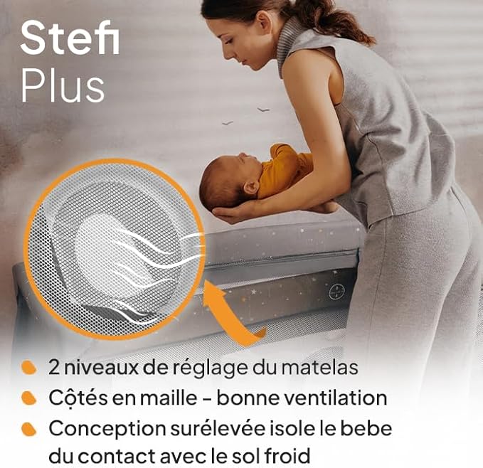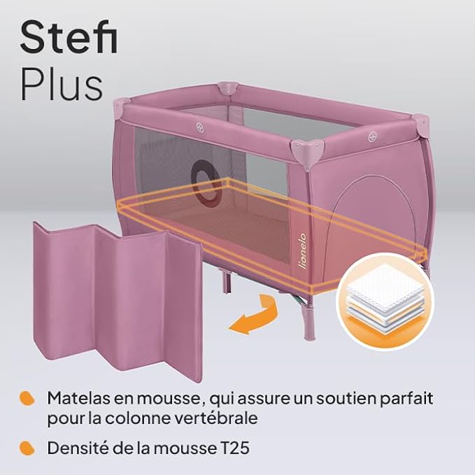 lionelo Stefi lit Bebe Parc Bebe jusqu'à 15 kg, entrée latérale, Dispositif de Protection Contre Le Pliage accidentel LockGuard, système de Pliage Rapide, Sac de Transport (Grey)