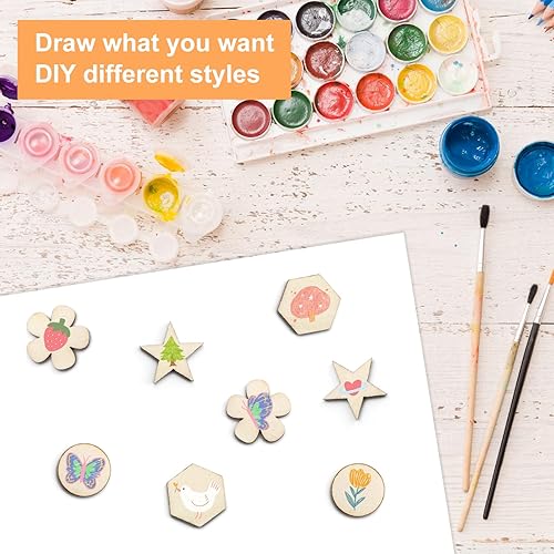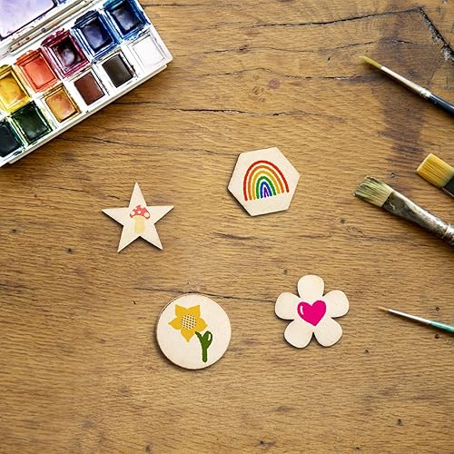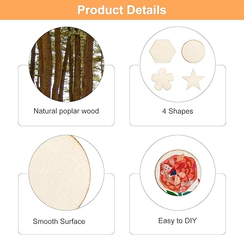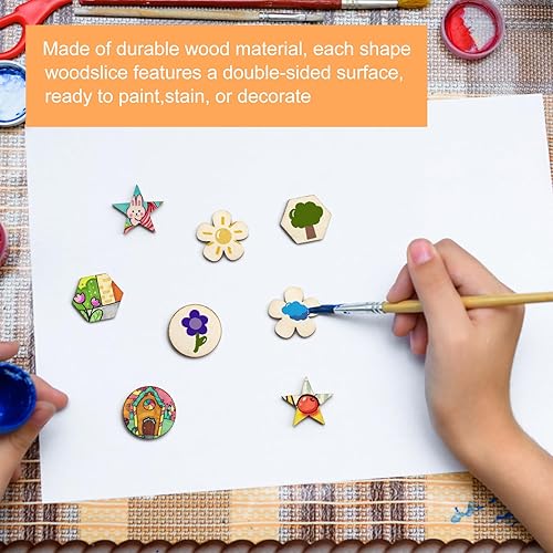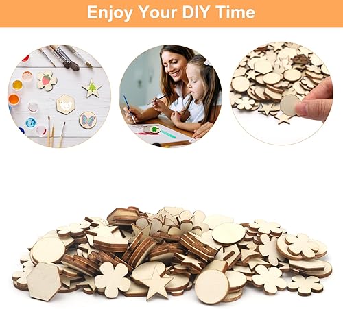 DAWRIS 400 Pièces Rondelles en Bois pour Le Bricolage 4 Formes Cercle, Fleur, Étoile, Hexagone Chaque 100 Pièces, Plaquettes en Bois Rond Rondelles Petit pour Le Bricolage, Décoration de Noël