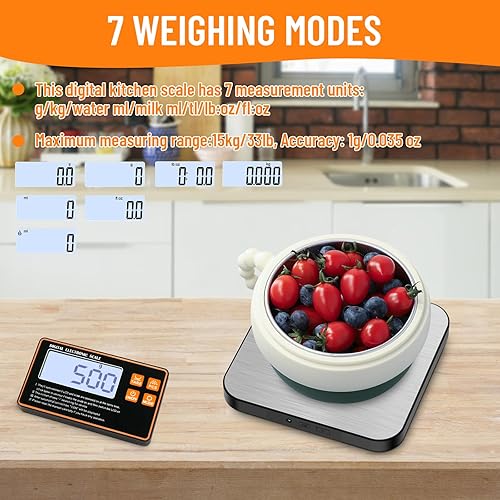 Balance de Cuisine Numérique, Balance de Cuisine Divisée En Acier Inoxydable, Haute Précision 1g-15kg, 7 Unités de Mesure, Avec Écran Lcd Séparé, Fonction de Comptage Et Fonction Tare
