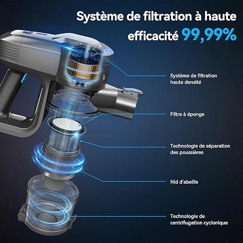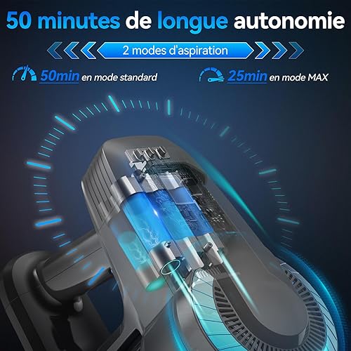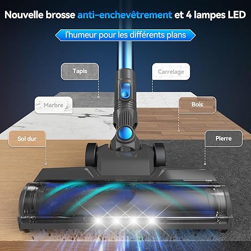 Générique Aspirateur Balai sans Fil, Aspirateur sans Fil, 6 en 1 Aspirateur Puissant Aspirateur sans Fil Puissant 50 Minutes d'Autonomie, Brosse LED, Aspirateur Balai pour Tapis Sols Poils d'animaux