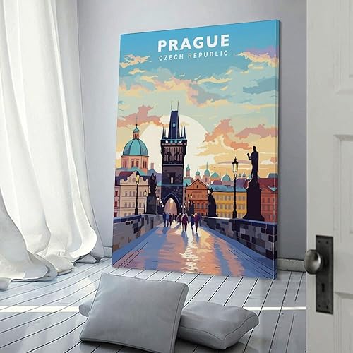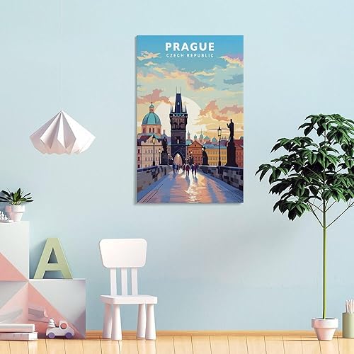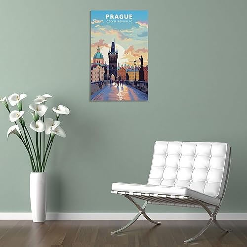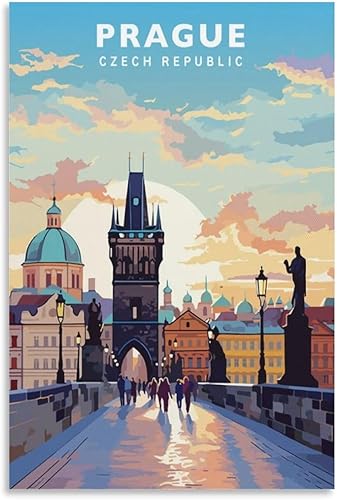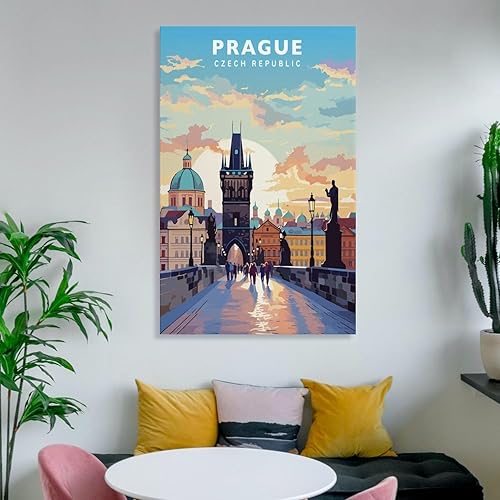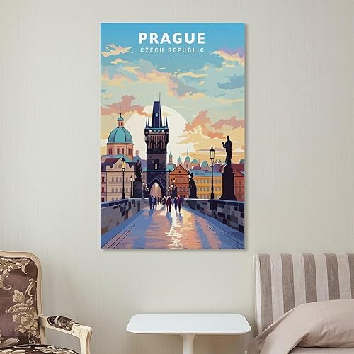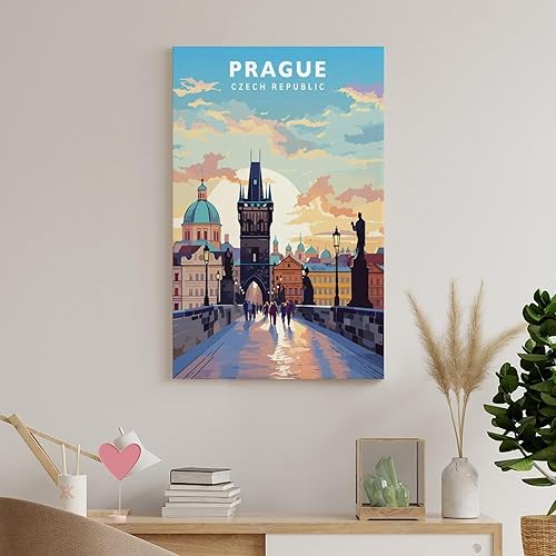 Jdjdu Poster de voyage vintage de Prague - Décoration murale - Poster sur toile