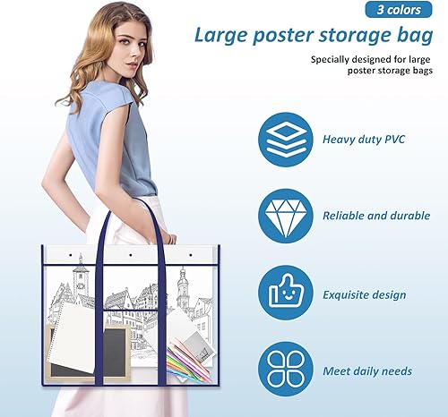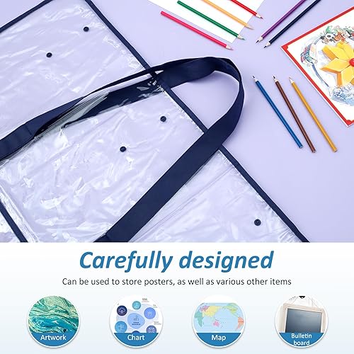Lot de 3 grands portefeuilles d'art A2 avec poignée, imperméable en PVC transparent pour étudiant, dessin, peinture, croquis, projet, organisation de bureau