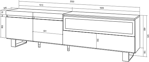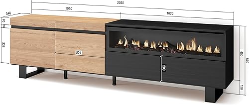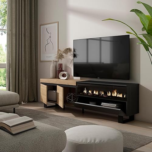 Skraut Home | Meuble TV | Banc Télé | Grand Espace de Rangement | 200x57x35cm | pour Les TV jusqu'à 80' | Cheminée électrique | Design Industriel | Style Moderne | Chêne et Noir