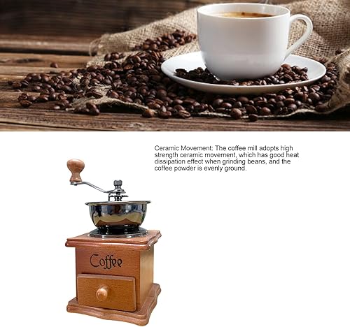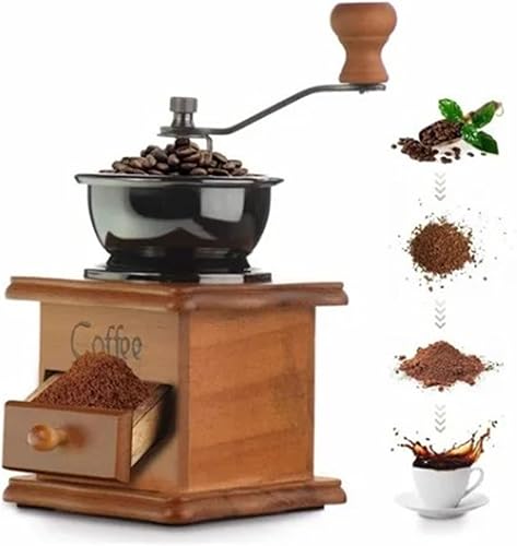 Moulin à café manuel vintage en bois, moulin à grains de café, avec réglage de l'engrenage réglable, Moulin à café au design antique, pour grains de café et épices vintage