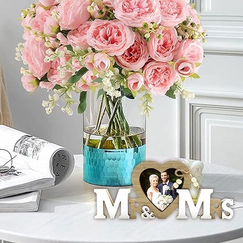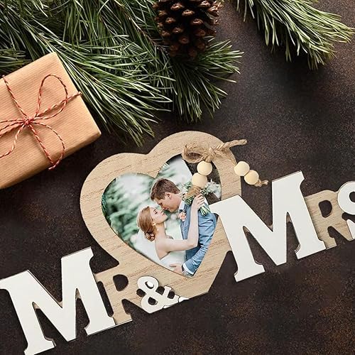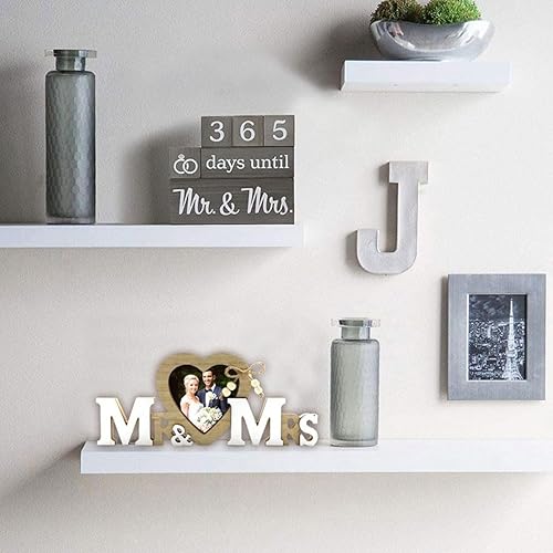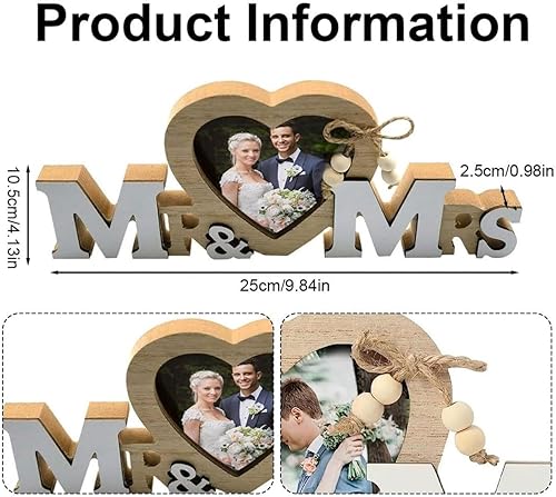 EORPAVU Décorations de mariage,Décoration mariage Monsieur et Madame, cadre photo forme coeur, décoration table mariage, cadeau mariage vintage, lettrage anniversaire en bois