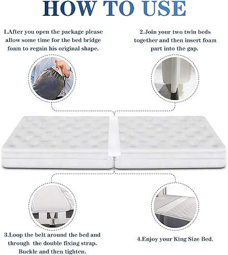 AWKAQUN Pont de Matelas (Bed Bridge) Kit, 2m Connecteur de Matelas Cale Matelas et Sangle Matelas Double Connecteur de Matelas pour Faire des Lits Jumeaux dans King