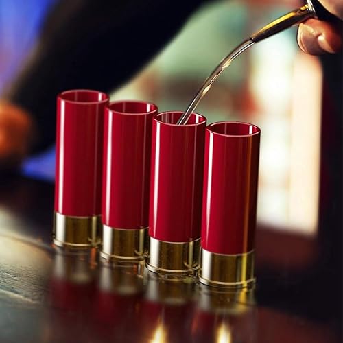 Sarini 4 Verres, Verres à Tequila au Design étui à Cartouches, Mini gobelets en Plastique pour Whisky, Rhum et liqueurs, Parfaits pour Les fêtes, Festivals et Coffrets Cadeaux