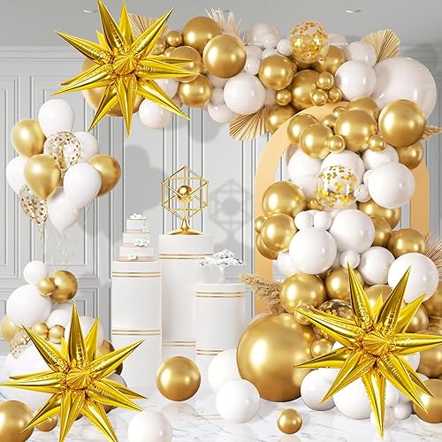 COLANANA Kit d'arche de ballons, 116 pièces, décorations d'anniversaire blanches et dorées pour adultes et enfants, fête prénatale, mariage, anniversaire de mariage, fête de carnaval