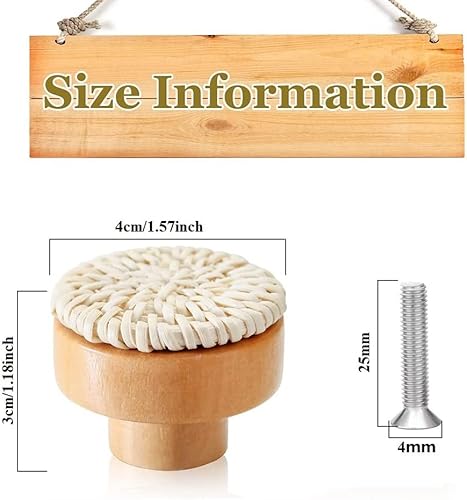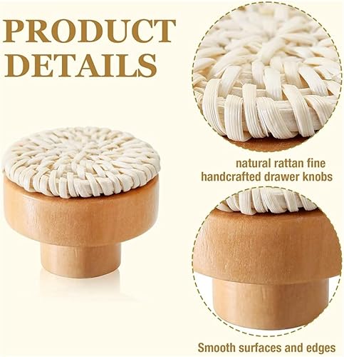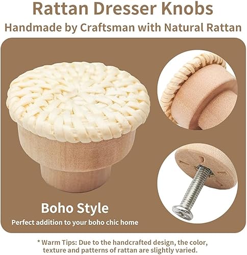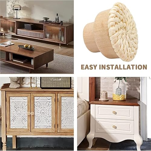 Tsadeer 8 PCS Boho Rotin Commode Poignées Tiroir en Bois Poignées Poignées En Osier Fait une Main Tirer Poignée pour Compléments Maison