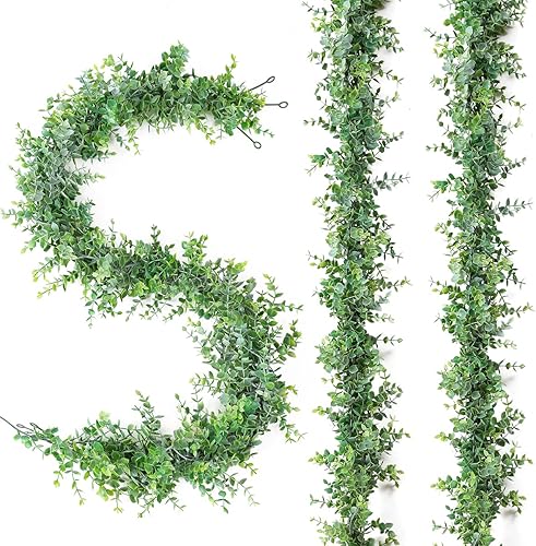 Veryhome Lot de 3 guirlandes d'eucalyptus artificielles de 1,8 m à Suspendre, Feuilles d'eucalyptus artificielles, Guirlande de Verdure Artificielle pour fête de Mariage, décoration d'intérieur