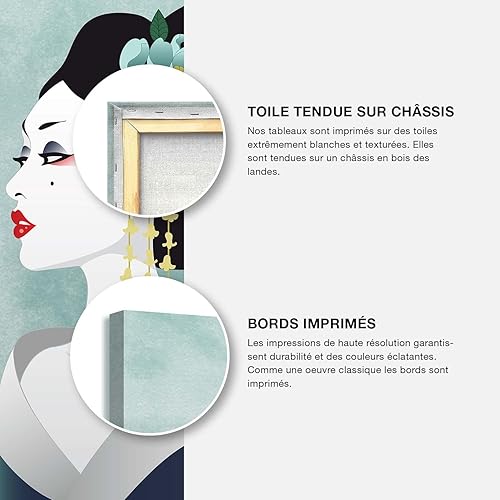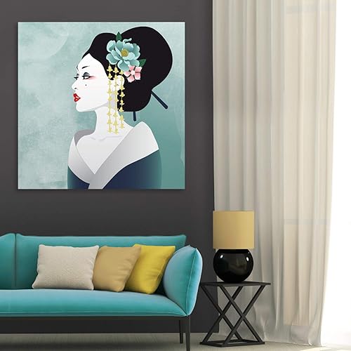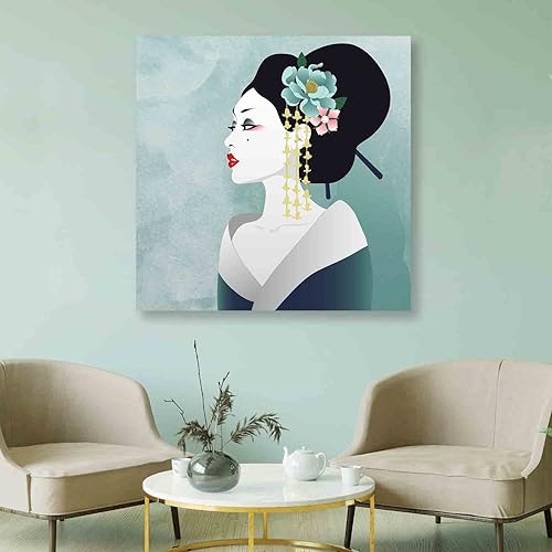 Arjazia Tableau Japonais Geisha Portrait - Décoration Murale - Toile Zen - 60 x 60 cm et 80 x 80 cm - Impression sur Toile - Déco Maison pour Salon et Chambre (60x60cm)