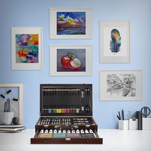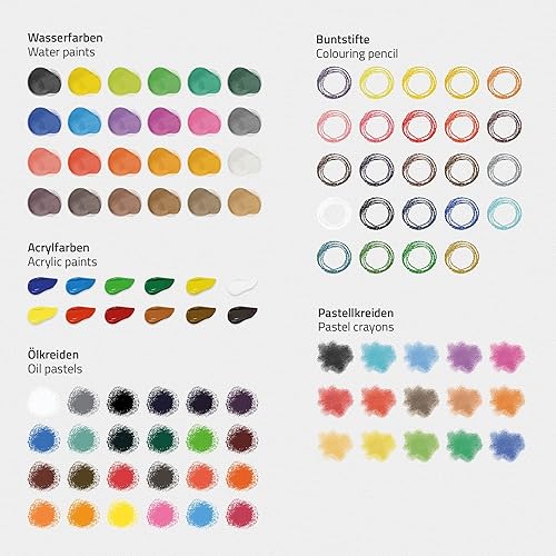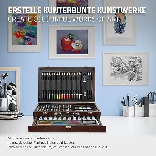 ECD Germany Malette de Peinture 112 Pièces, Crayons de Couleur, Peintures à l'Huile et Acryliques, Aquarelles, Gomme, Taille-Crayon, Crayons HB/2B, Coffret de Coloriage en Bois, pour Enfants/Adultes