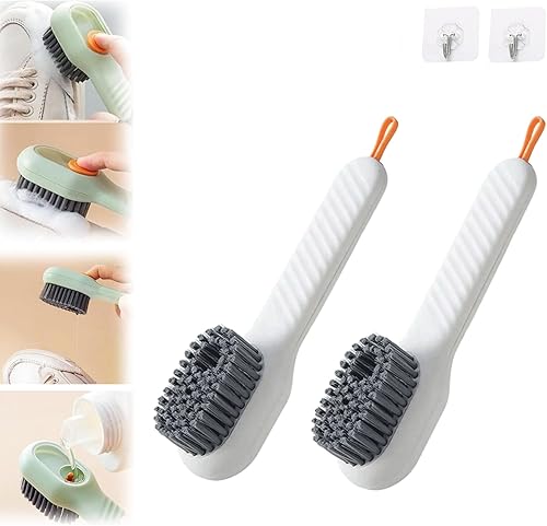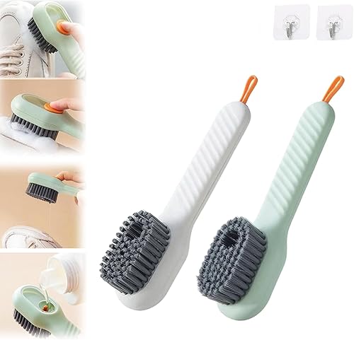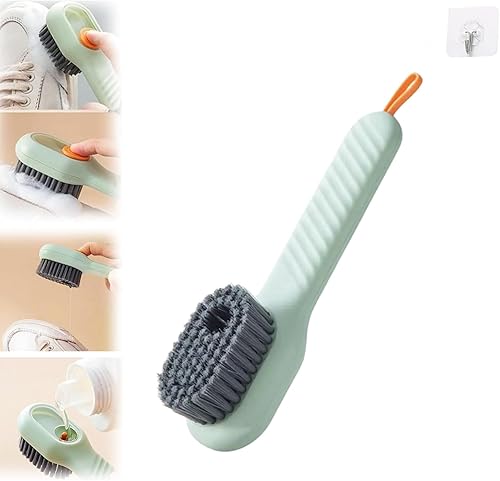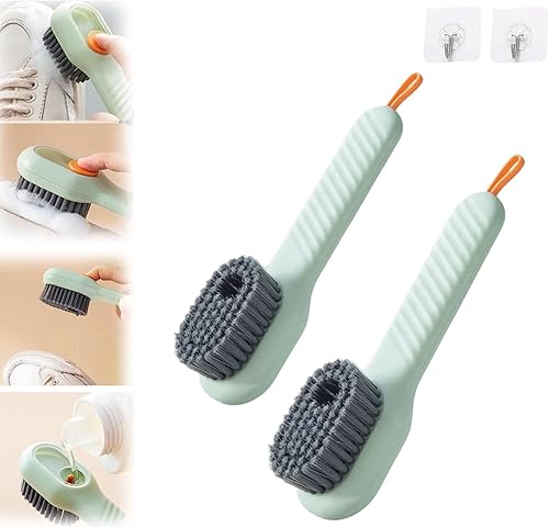 Brosse de Nettoyage multifonctionnelle 2 en 1, Brosse de Nettoyage multifonctionnelle avec Distributeur de Savon,Brosse à Linge pour Nettoyer Les vêtements, Les Chaussures (Vert)