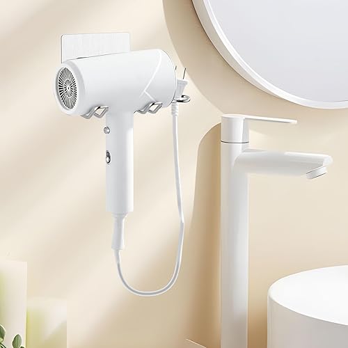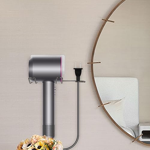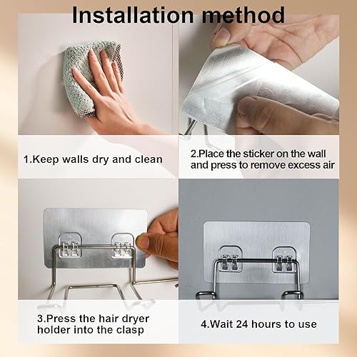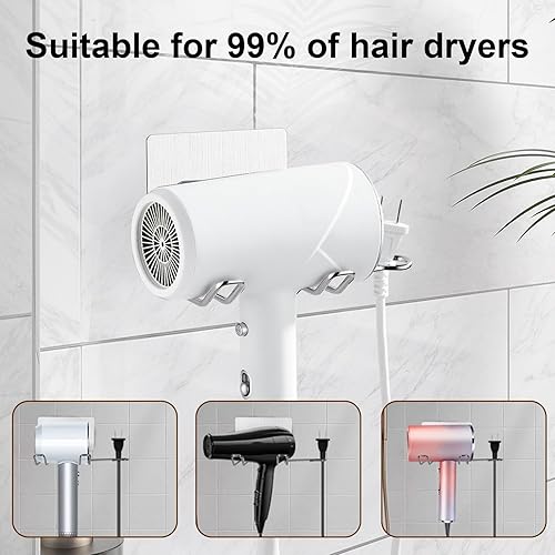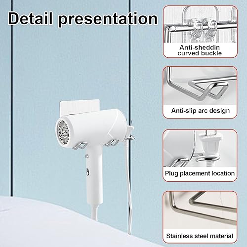 MultiValue Support Seche Cheveux, Acier Inoxydable Porte Seche Cheveux Mural avec Autocollant Porte Seche Cheveux sans Percage avec Prise Placement pour Chambre à Coucher Salle de Bain