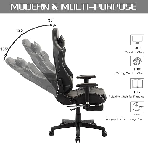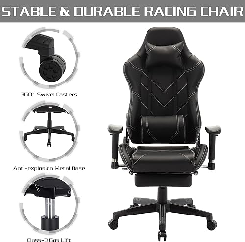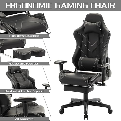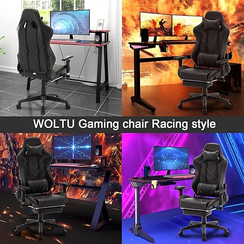 WOLTU Chaise Gaming Tissu Respirant pour l'été Ergonomique Fauteuil Gaming, Adultes Enfants Siege Gaming Gamer avec Repose-Pieds, Dossier Haut, Chaise Fauteuil Pivotant Bureau pour Livestream Noir
