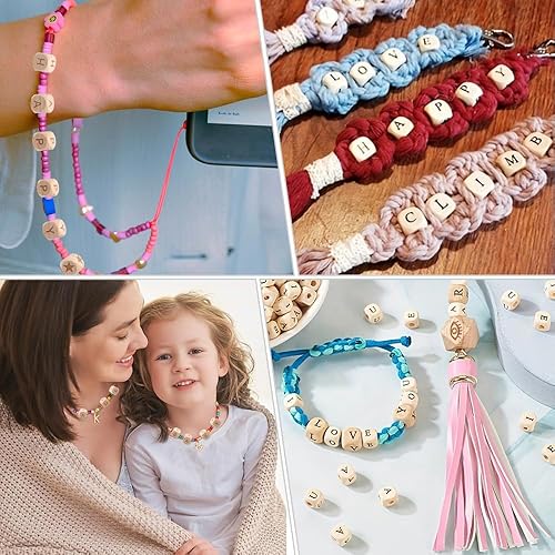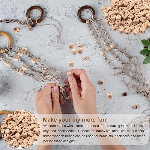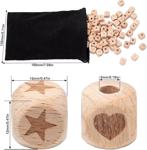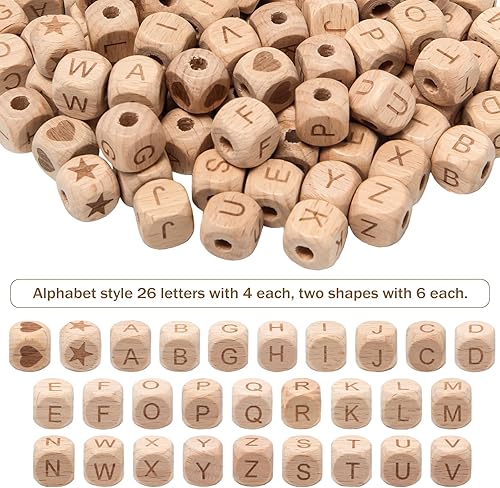 Keboyoe 116 Pièces Perles Alphabet en Bois Naturel 12 mm Perles en Bois Lettres Alphabet A à Z Perles Lettres en Bois Carré pour Bracelet, Artisanales de Bricolage (avec Sac de Rangement)