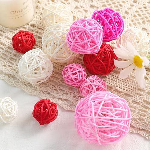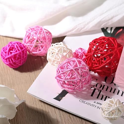 Lot de 42 boules en rotin rose pour remplissage de vase, mariage, fête d'anniversaire, décoration de table de maison