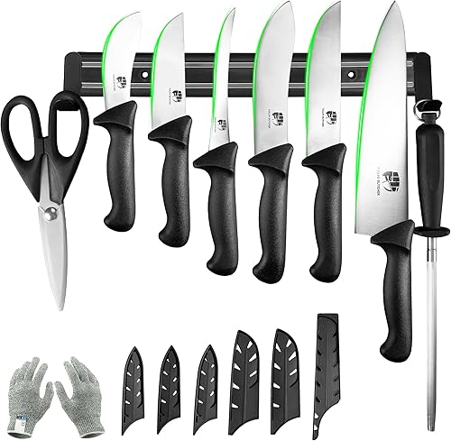 FULLHI 11 Set de couteaux de boucher, Set de couteaux de chef à désosser en acier inoxydable antidérapant, Set de transformation de la viande pour la cuisine familiale, l'abattoir et le restaurant