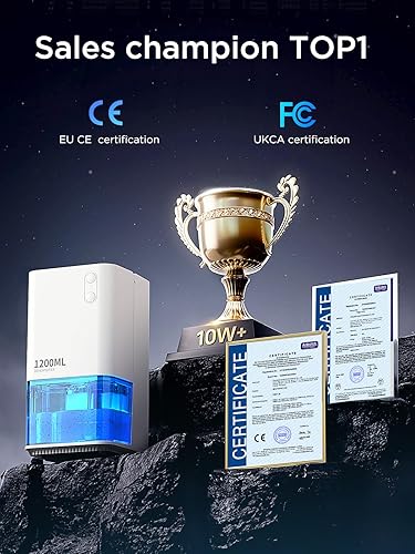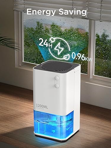 Déshumidificateur 1200ML, EasyAcc® Déshumidificateur d'Air Electrique Ultra Silencieux Arrêt Automatique 7 Lumière LED Colorée Portable Compact Pour la cave salle de bain,armoire,chambre,placard
