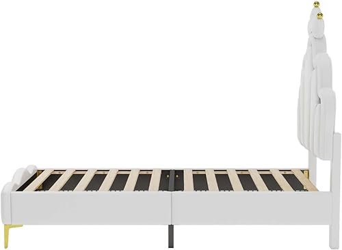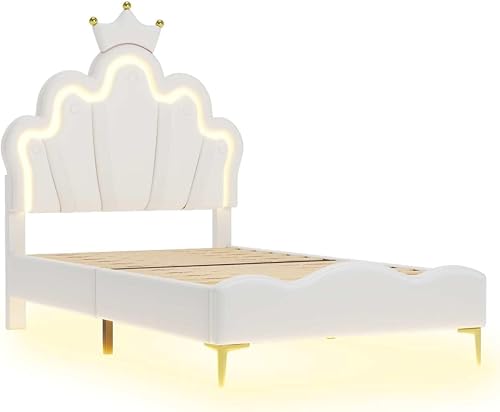 YEHTOKHOME Lit Rembourré avec lumières LED réglables et Tête réglable en Hauteur,Moderne lit de Princesse avec moulure en Couronne,PU(sans Matelas) (Rose 1, 90x200cm)