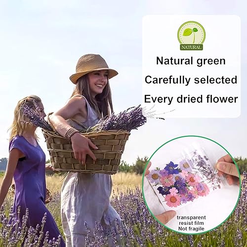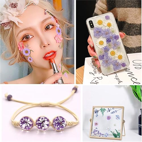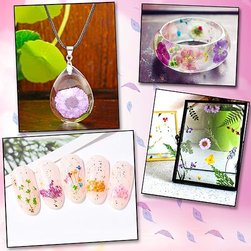 Fleurs Séchées Pressées Naturelles en Résine, Moules Créatifs Inclus pour Bijoux, Scrapbooking, Bougies, Savons, Décoration D'ongles, Idéal Loisirs DIY, Cadeaux Artistiques