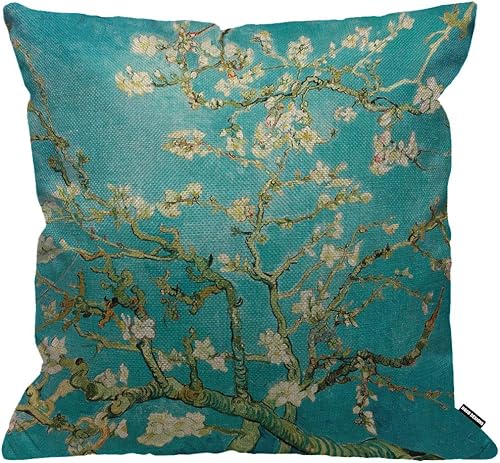 HGOD DESIGNS Housses de Coussin Van Gogh Classique Arts Peinture Amande Arbre Fleur Taies d'oreillers Maison Décoration pour Hommes Femmes Garçon Fille Chambre Salon Canapé Coussins Oreillers 45x45cm
