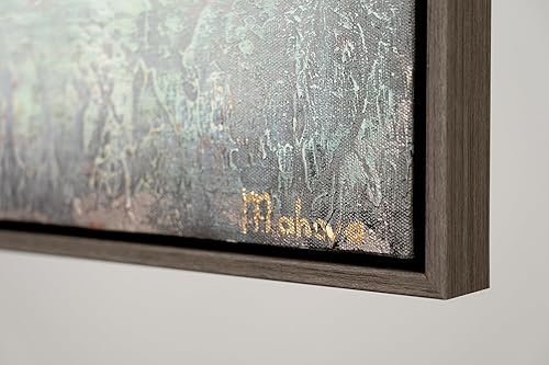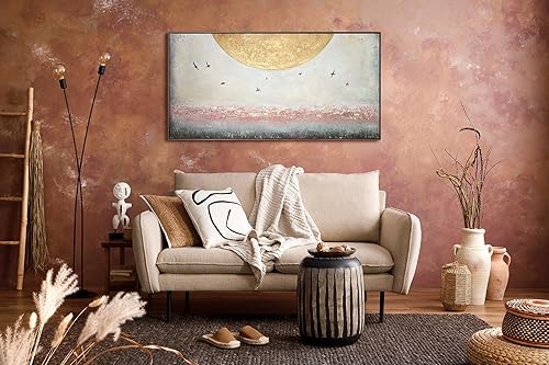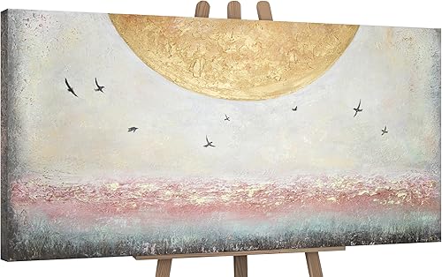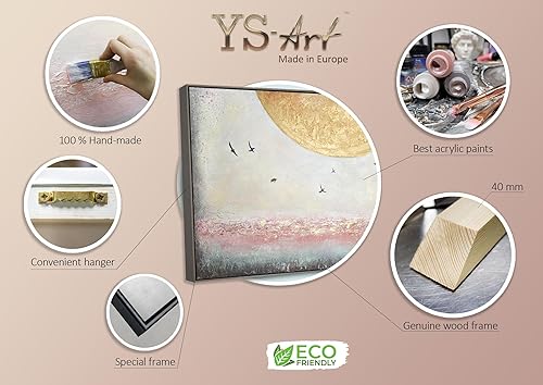 YS Tableau decoration murale salon Énergie du soleil Tableau peinte à la main paysage d'été couleurs claires avec de l'or Décoration intérieure avec cadre 140x70 cm