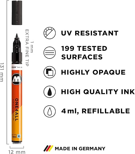 Molotow mo127101 ONE4all 127 HS de 6 EF pour charpentier, noir, contenu du