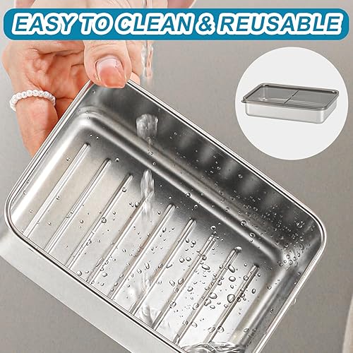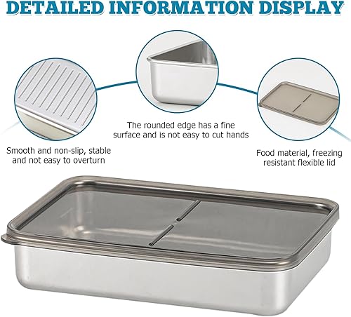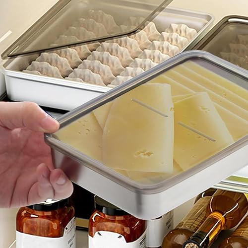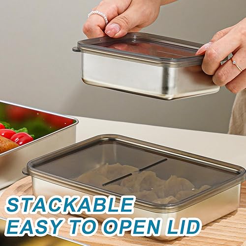WANDGU 3 pièces Boîte de conservation en acier inoxydable : Boîte à trancher avec couvercles hermétiques à l'air, boîte de conservation des aliments pour la viande, le fromage, 800ML