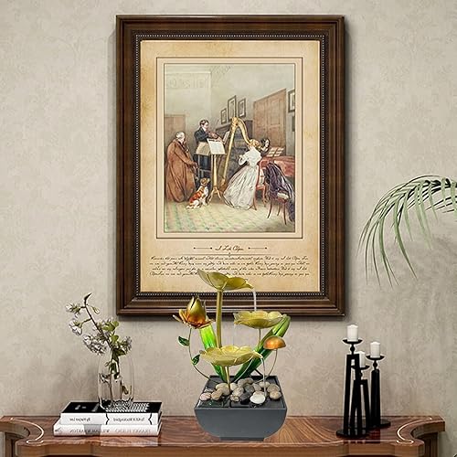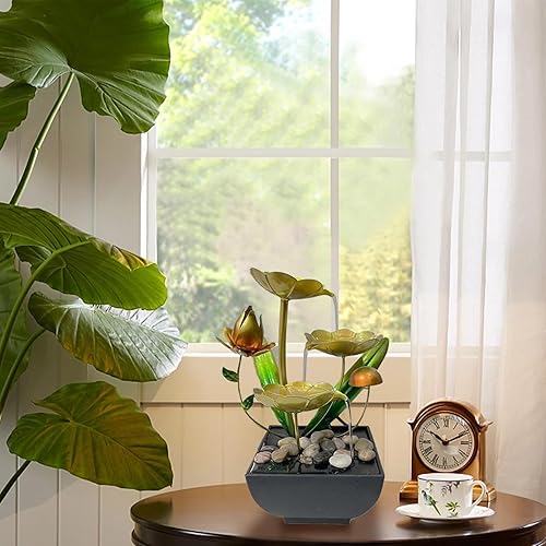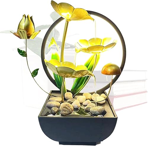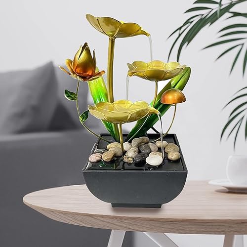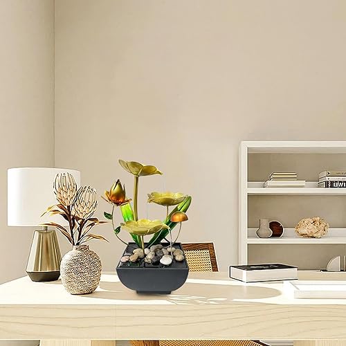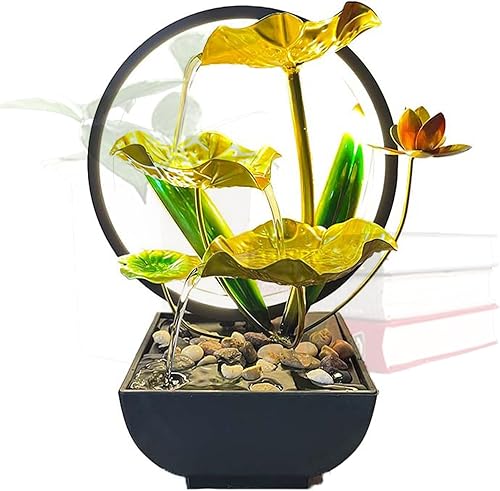 Tuzsocr Fontaine d'intérieur,Ornements d'eau Courante,Fontaine d'eau de Bureau avec Cascade LED - Idéal Méditation et Détente - pour la Décoration de la Maison,L'ameublement de Bureau (Style 2-A)