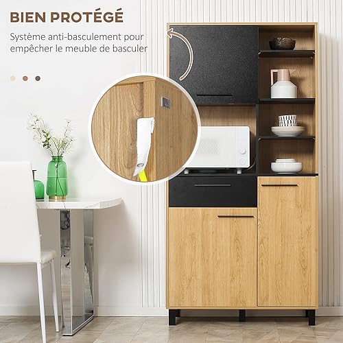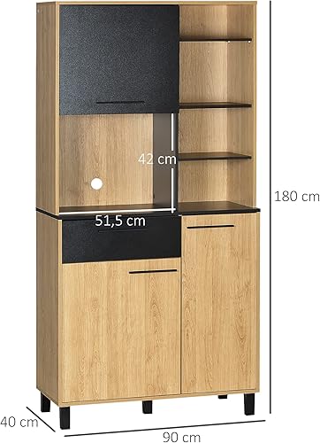 HOMCOM Buffet de Cuisine Armoire de Cuisine Multi-rangements avec Un tiroir, 3 placards, 4 niches et Passe-câbles Hauteur 180 cm