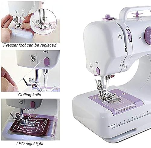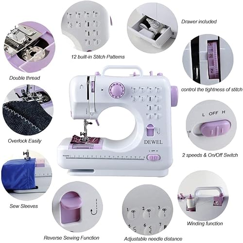 DEWEL Machine à Coudre 12 Ponits Fil et Vitesse Double avec Bobine de Fil Canette et Pédale avec LED éclairage Ajustable Multifonctionnelle portable Outil de Couture Domestique