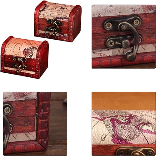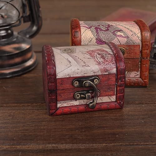 2 Pièces Mini Coffre Trésor, Rétro Boîte Bijoux Petits Bois, Coffre Trésor Pirate, Mini Boîte de Rangement, pour Les Bijoux, Colliers, Boucles d'oreilles et Autres Cadeaux