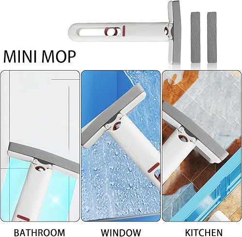 ZIOYA Mini Vadrouille de Nettoyage avec 3 Têtes en Coton Mini Vadrouille Portable Balai Eponge pour Les Fenêtres Bureau Salle de Bain Cuisine Verre Voitures Carrelages Muraux